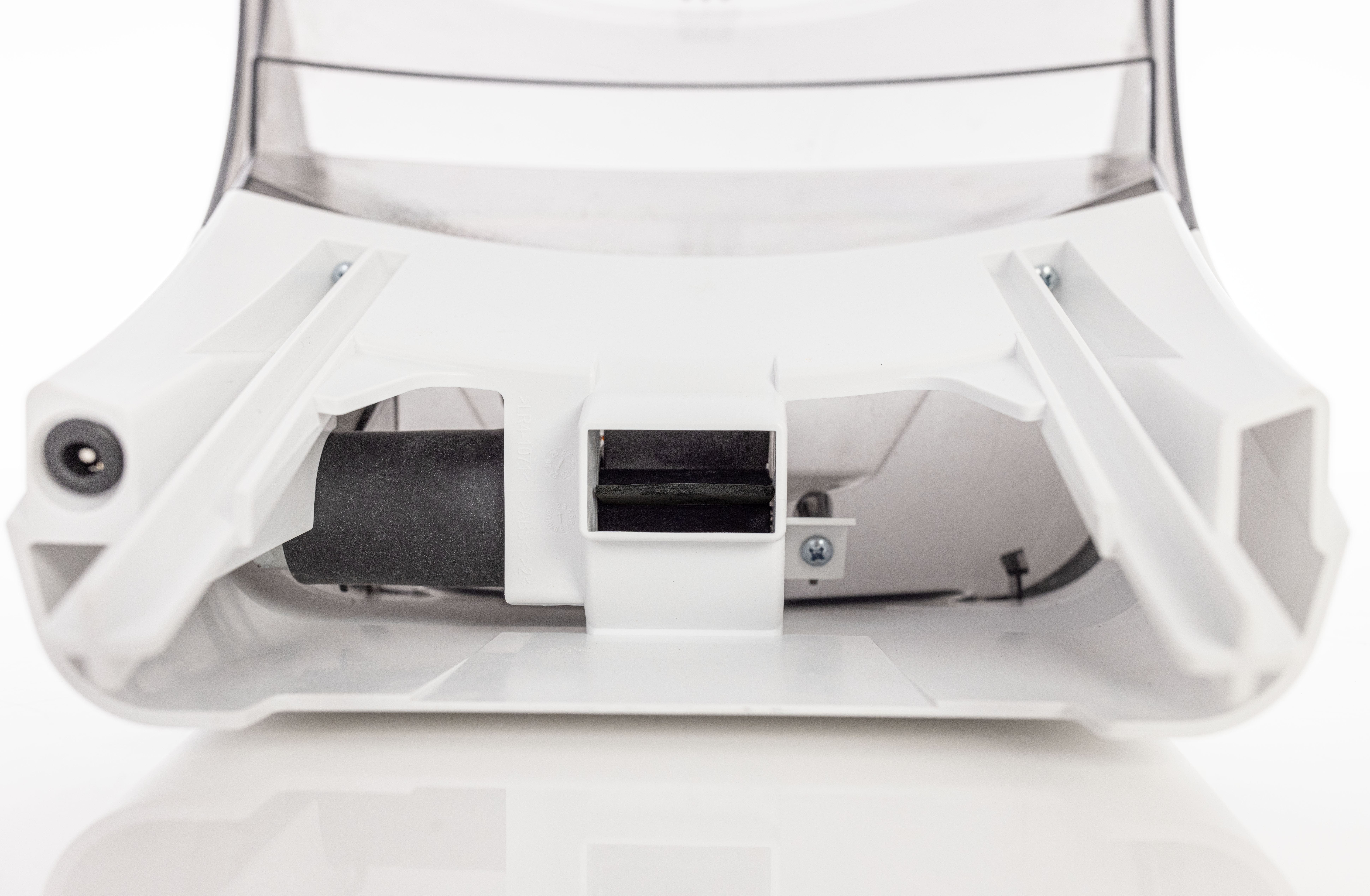 - Vacuum any dust, loose litter, or clumps from the power jack, circular pockets, base hinge pocket, and on the base.