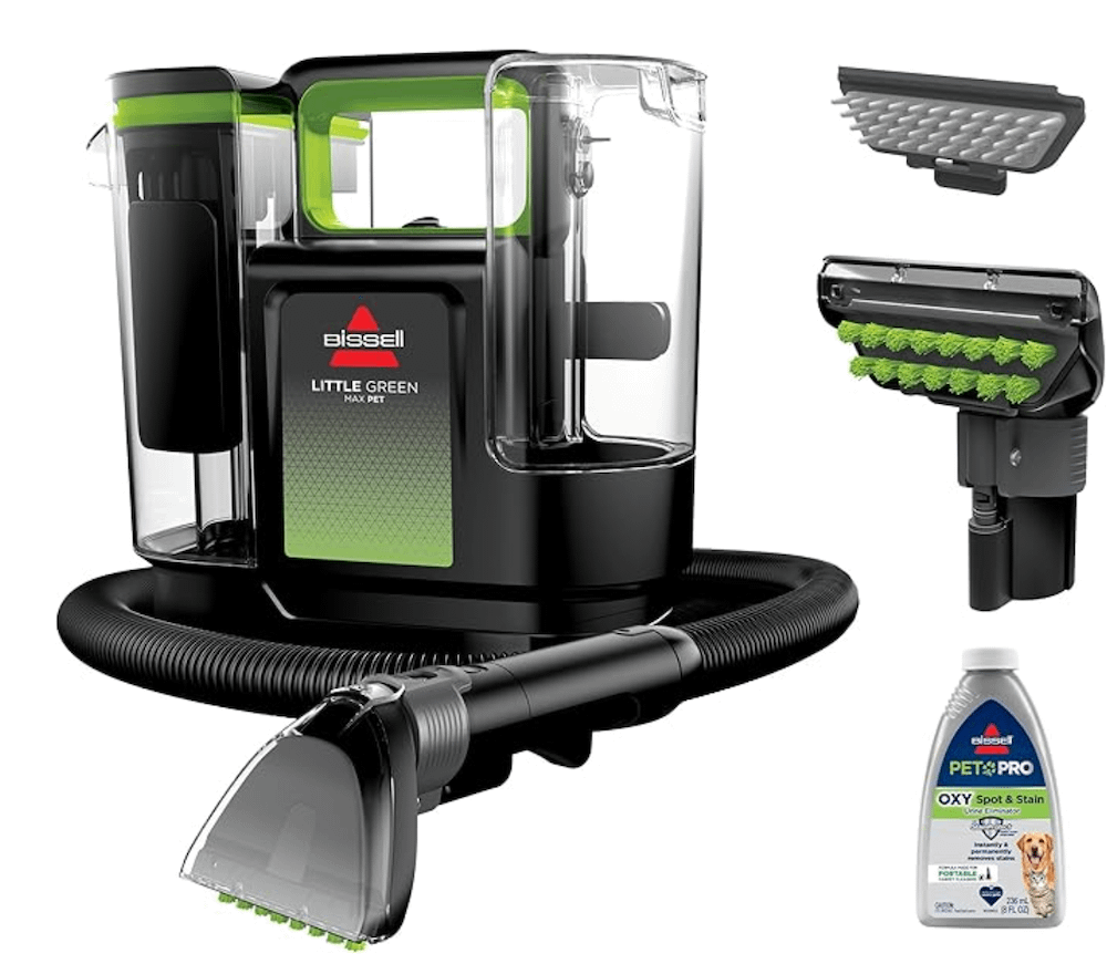 - Best for pet messes: Bissell Little Green Max Pet – Effectively tackles tough pet messes on carpets and upholstery.