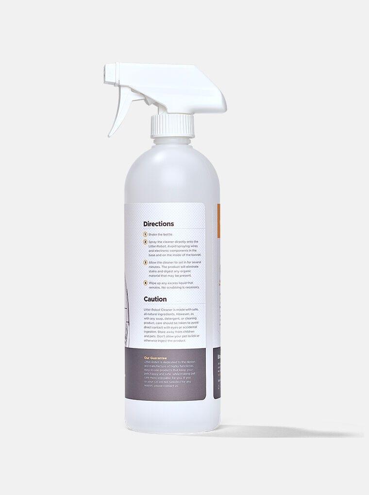 Litter-Robot cleaner spray is made with safe, all-natural ingredients. However, as with any soap, detergent, or cleaning product, care should be taken to avoid direct contact with eyes or accidental ingestion. Store away from children and pets. Don't allow your pet to lick or otherwise ingest the product.