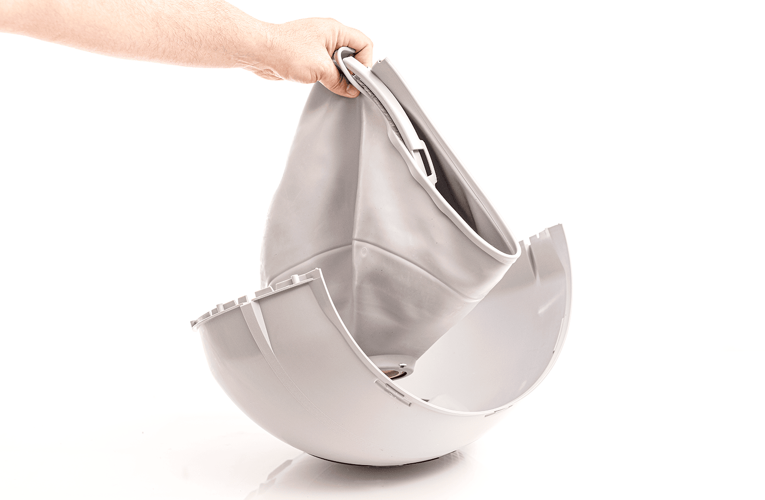 Abaissez et alignez la moitié supérieure du globe avec la moitié inférieure. Les deux moitiés se serreront l’une contre l’autre, le bord superposé du revêtement agissant comme un joint.