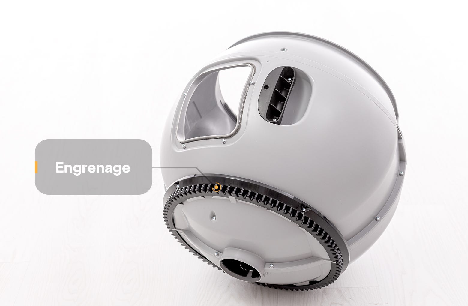 - Le grand engrenage noir à l'arrière du globe devrait facilement s'engager avec le plus petit engrenage d'entraînement blanc de la base.