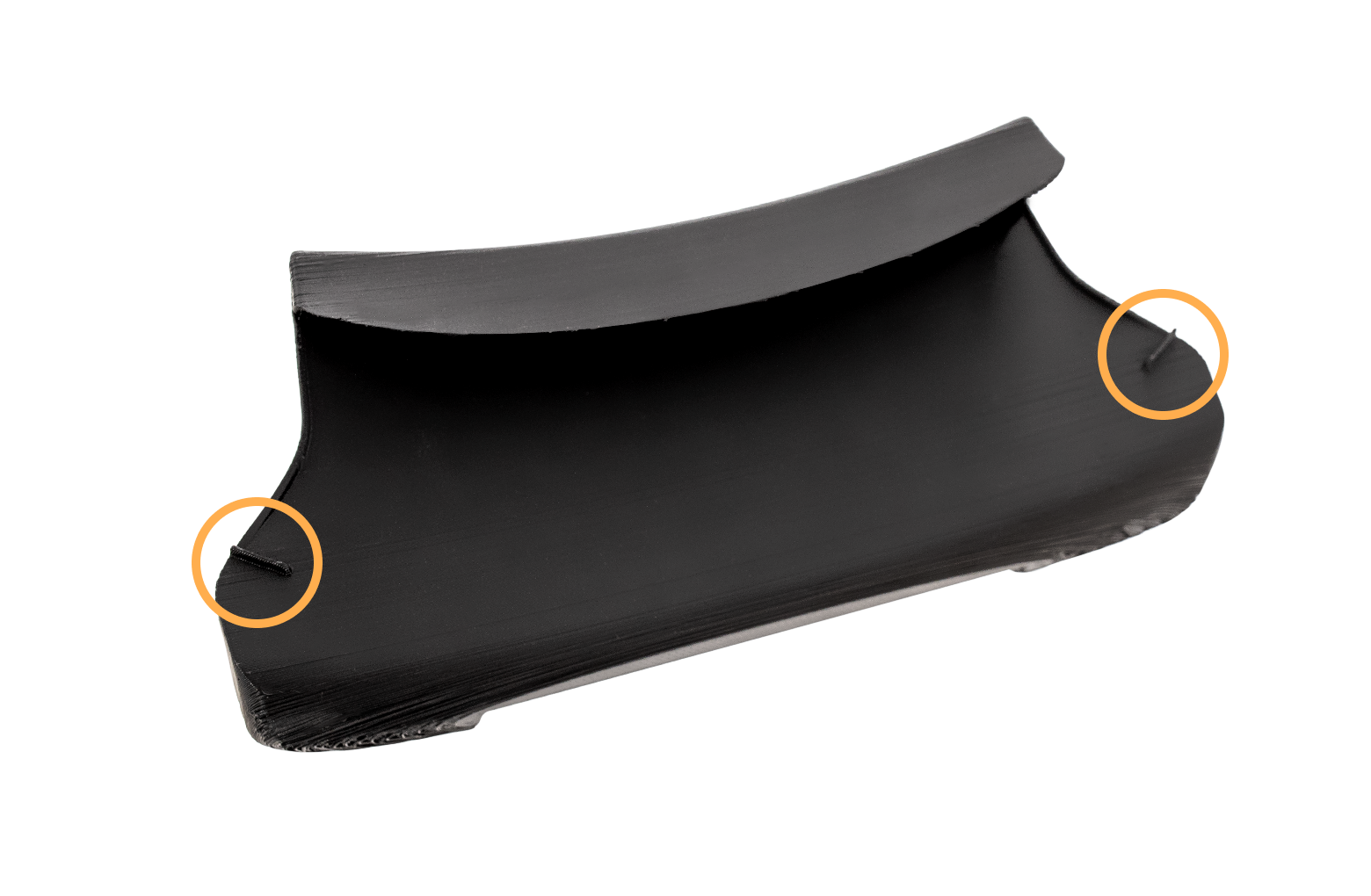 Remarque : Une nervure au centre de la rampe s'aligne sur une rainure au milieu de chaque charnière pour garantir que la rampe est correctement centrée lors de l'installation.