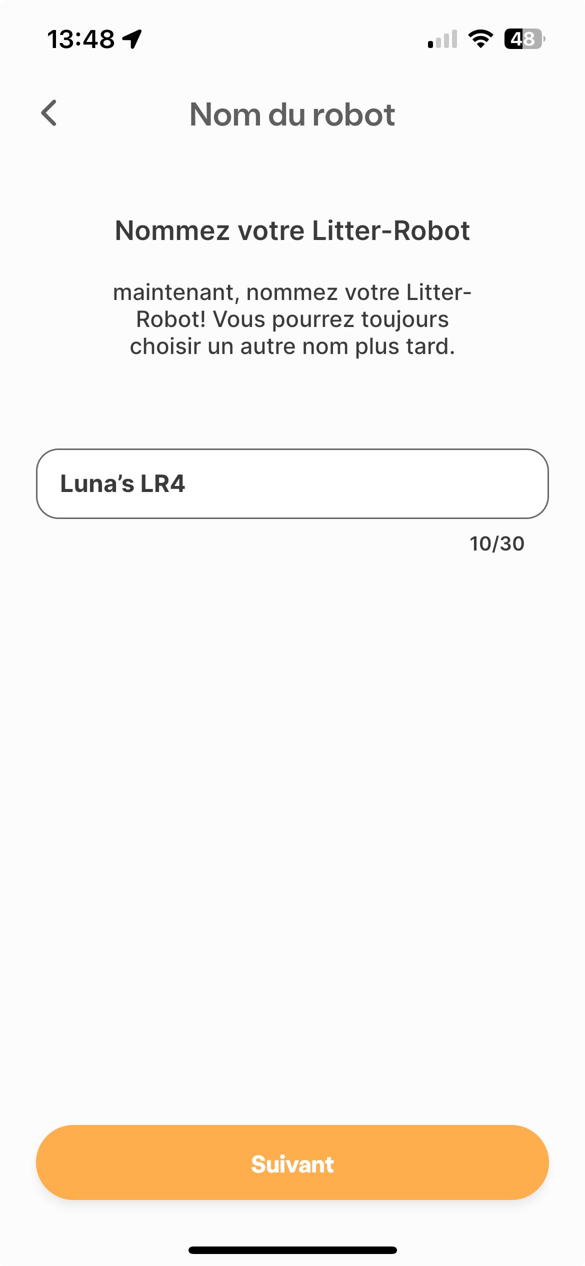 Donnez maintenant un nom à votre Litter-Robot. Vous pourrez toujours