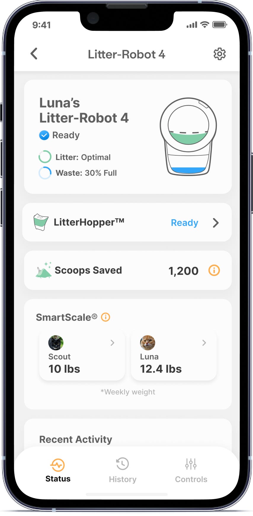 Litter-Robot 4 is equipped with OmniSense™ detection that utilizes laser and weight sensor technology to provide real-time litter and waste drawer levels.
