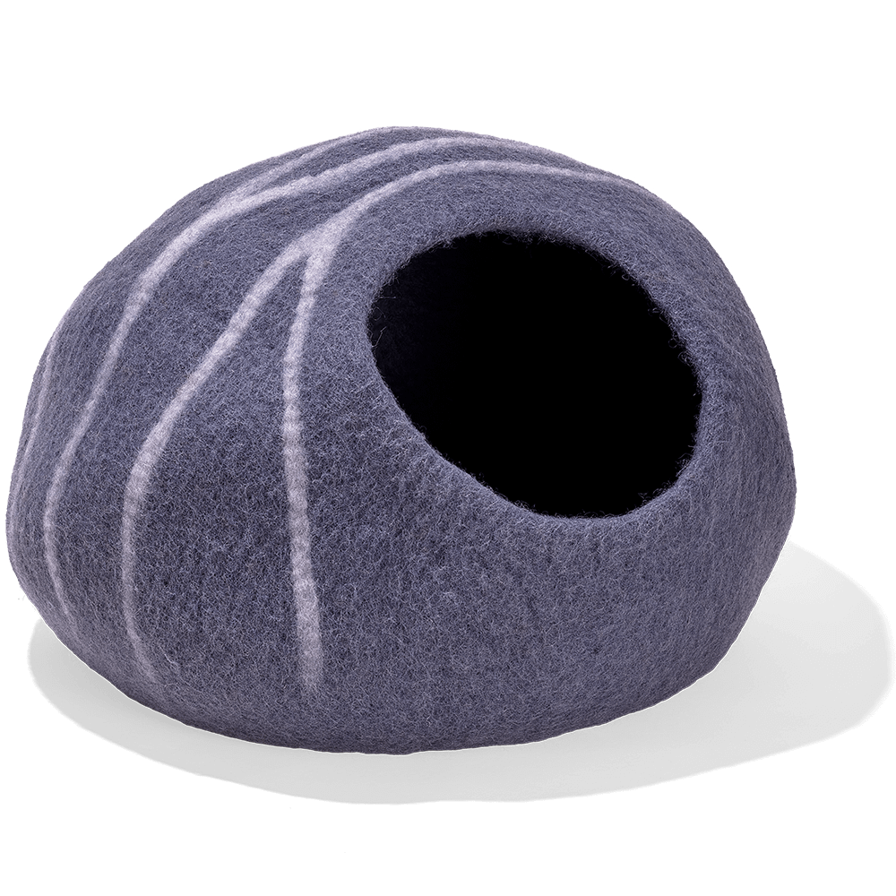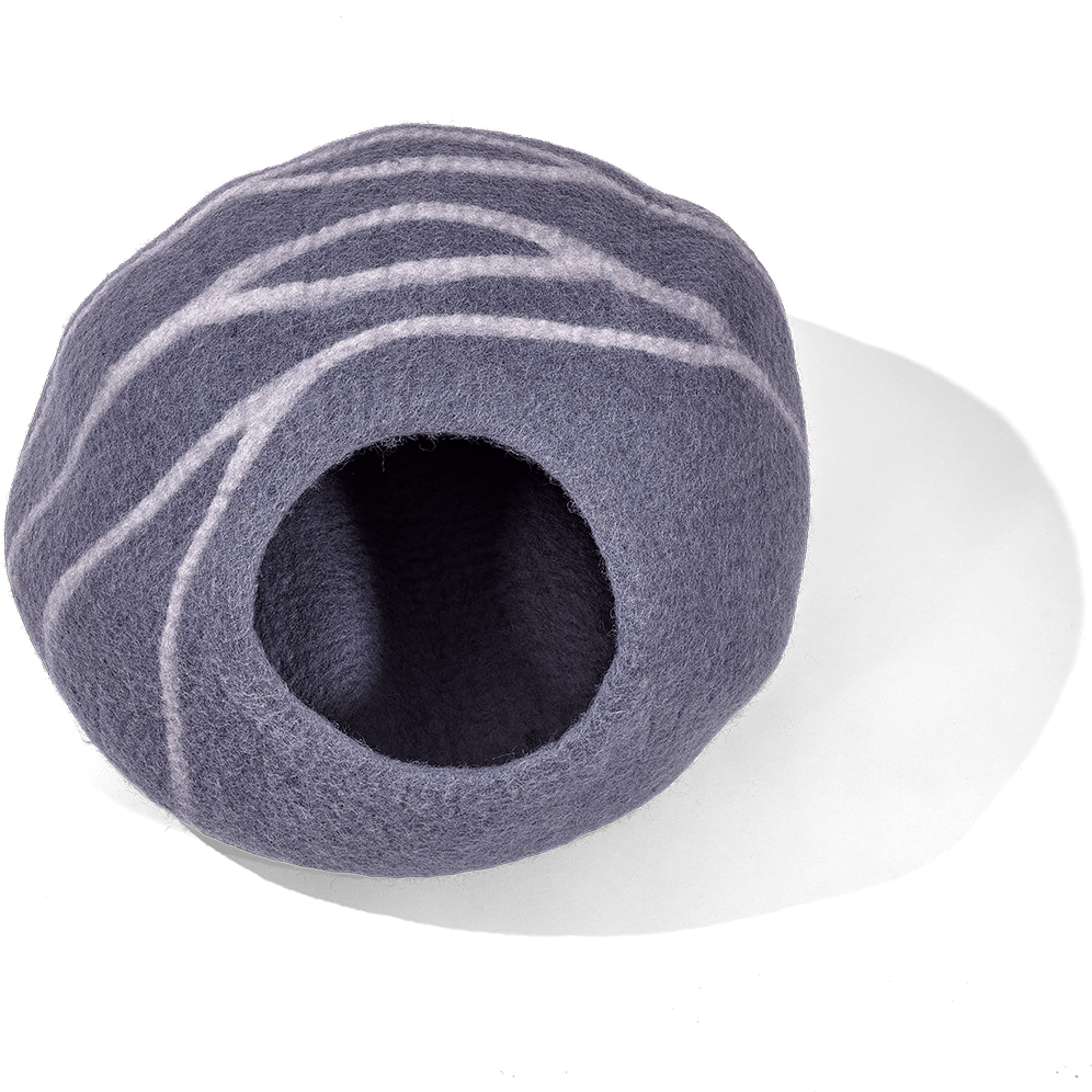 Litterbox.com Cat Nest is the perfect place to rest. This cat bed provides the warmest and coziest spot for your cat to “nest” as an enclosed spot made from 100% wool. Cat Nest measures 20’’ in diameter with a 6’’ opening and features a unique blue-grey and white design. It’ll be a fast favorite in your kitty household! Please note that this cat bed is not machine washable, as it is made entirely of wool.