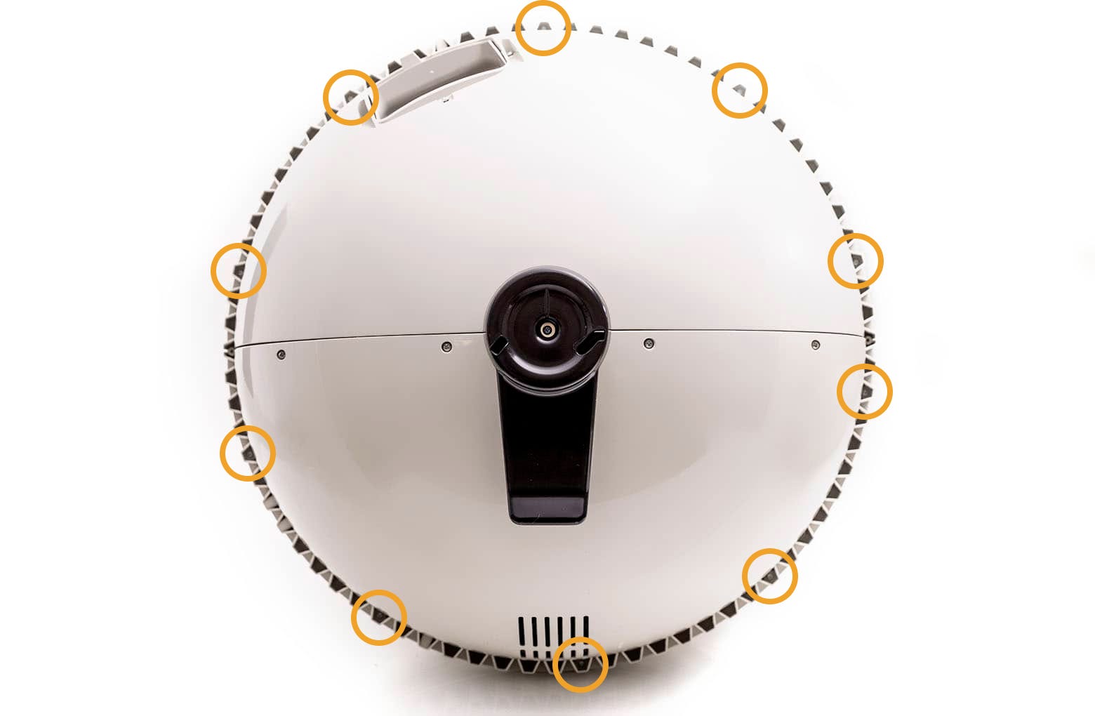 - Entfernen Sie die 10 Schrauben rund um die Y-Achse des Globus. Legen Sie die Schrauben beiseite.