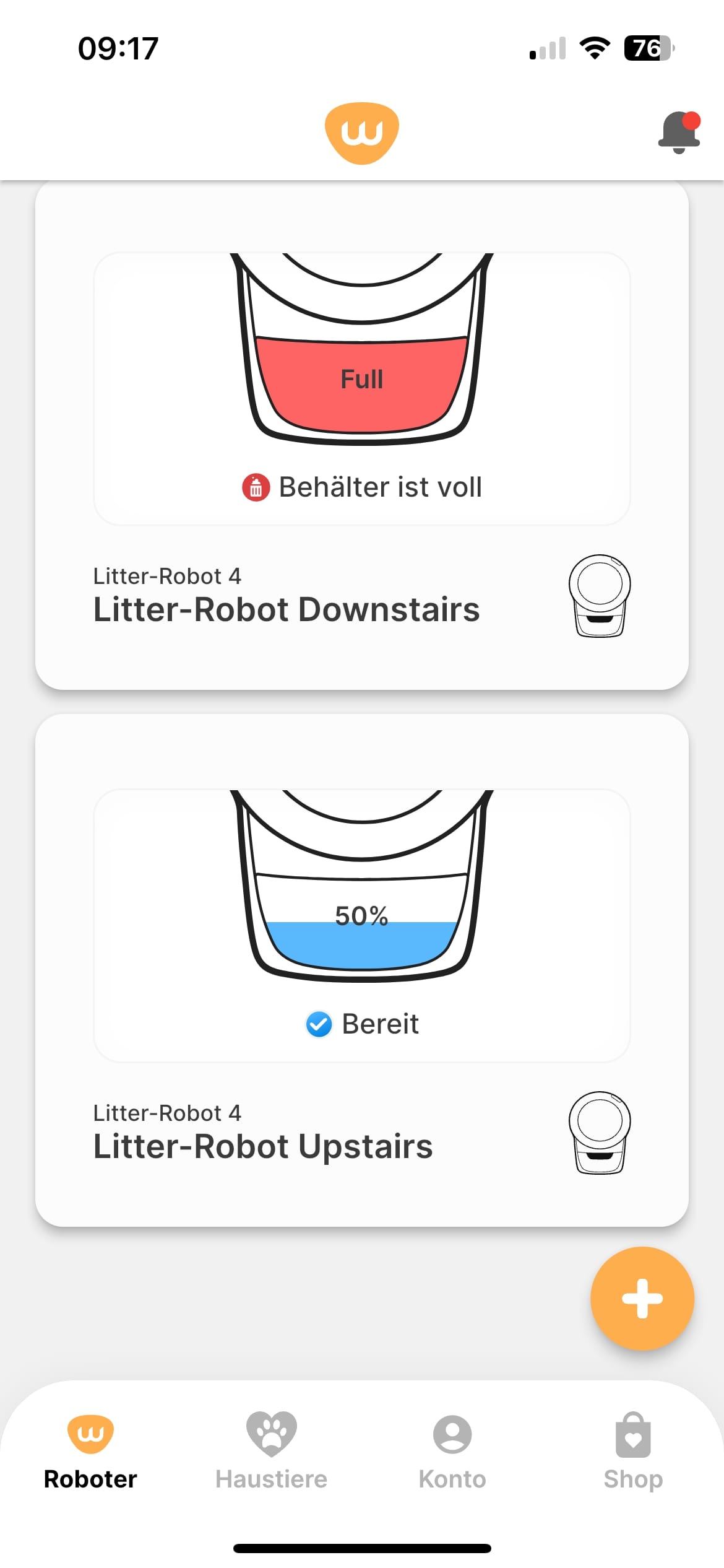 Wenn Litter-Robot die Verbindung nicht automatisch wiederherstellt, stellen Sie sicher, dass Sie die neueste Version der Whisker-App verwenden.