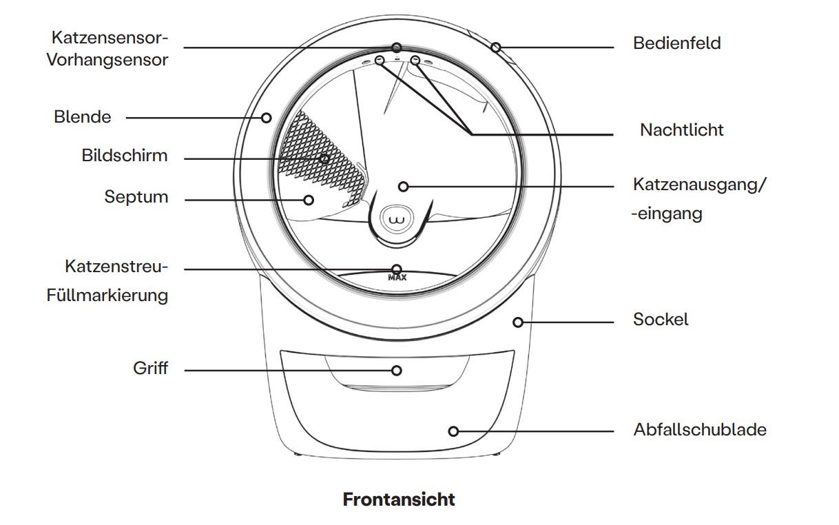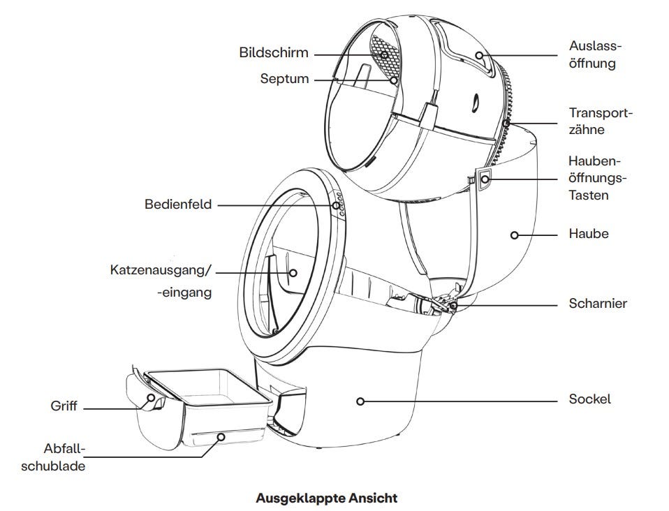 Litter-Robot 4 besteht aus 5 Hauptkomponenten: