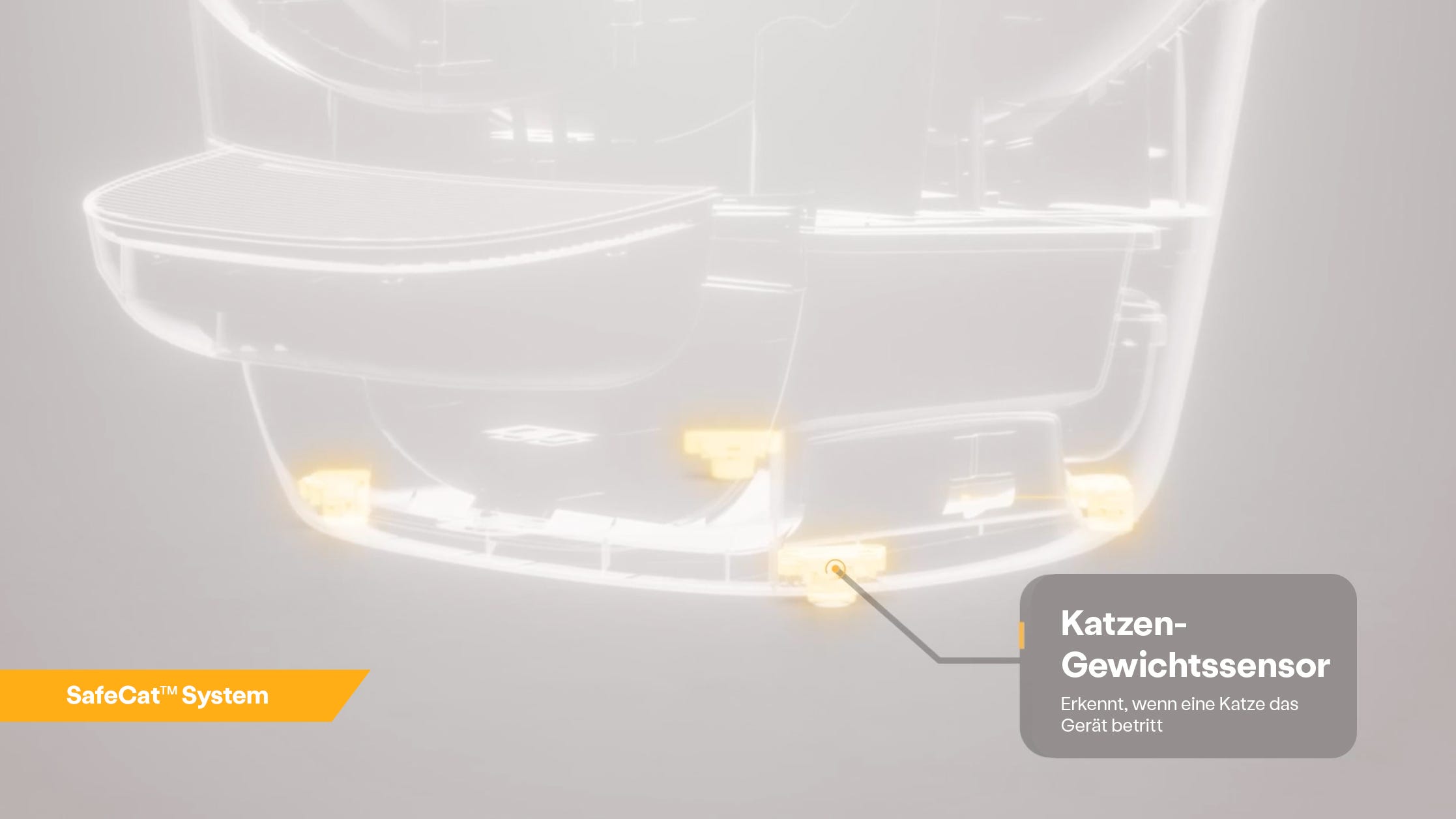 Der Litter-Robot ist mit Gewichtssensoren an der Basis der Einheit ausgestattet, die dazu dienen, die Katze in der Ausgangsposition innerhalb der Kugel zu erkennen und zu wiegen.