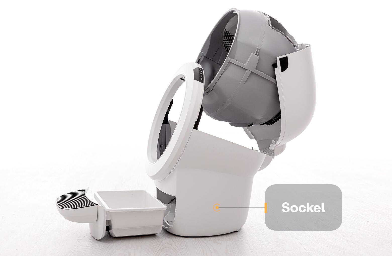 Der Litter-Robot ist an der Ober- und Unterseite der Basis mit bürstenartigen Dichtungsstreifen ausgestattet. Diese Dichtungsstreifen helfen dabei, Gerüche in der Abfallschublade einzudämmen.