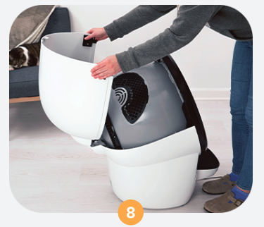 Die Backup-Batterie des Litter-Robot 4 sorgt dafür, dass Sie bei einem Stromausfall nicht schaufeln müssen. Sie ermöglicht bei Stromunterbrechung eine Betriebsdauer von 24 bis 48 Stunden.