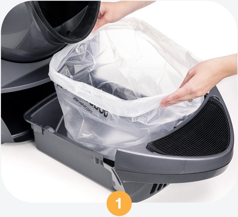 Litter-Robot est livré avec un revêtement de tiroir à déchets installé.