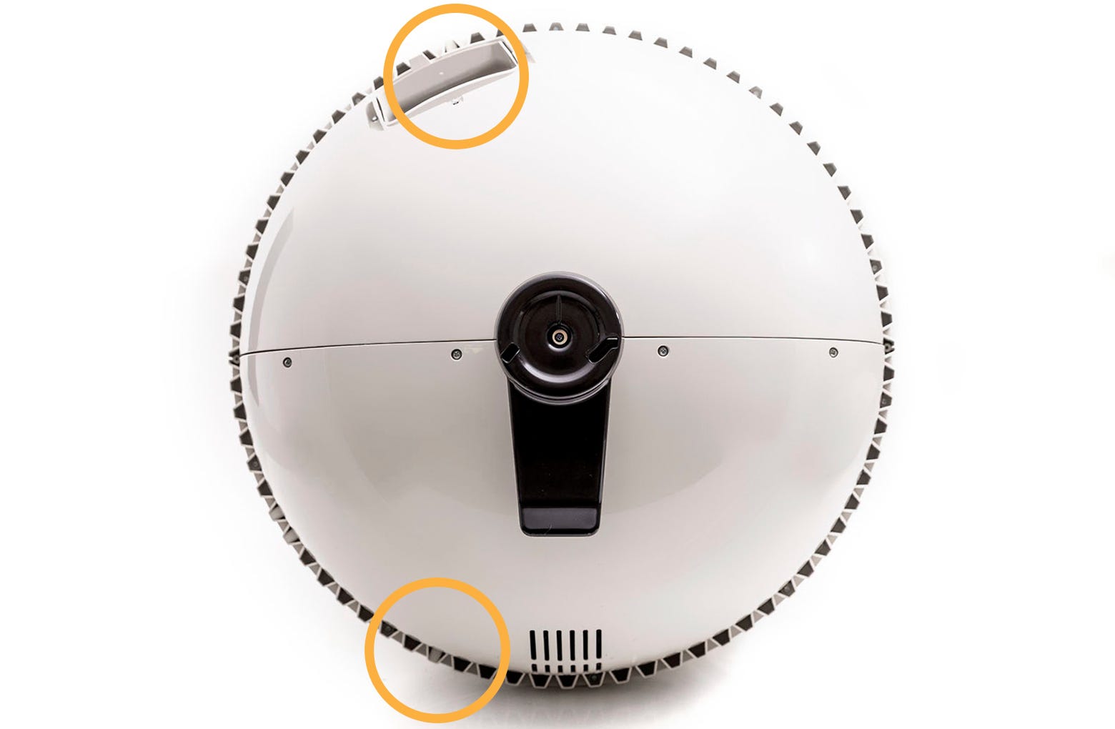 - A l'arrière du globe, tournez la clé noire dans la pochette à clés.