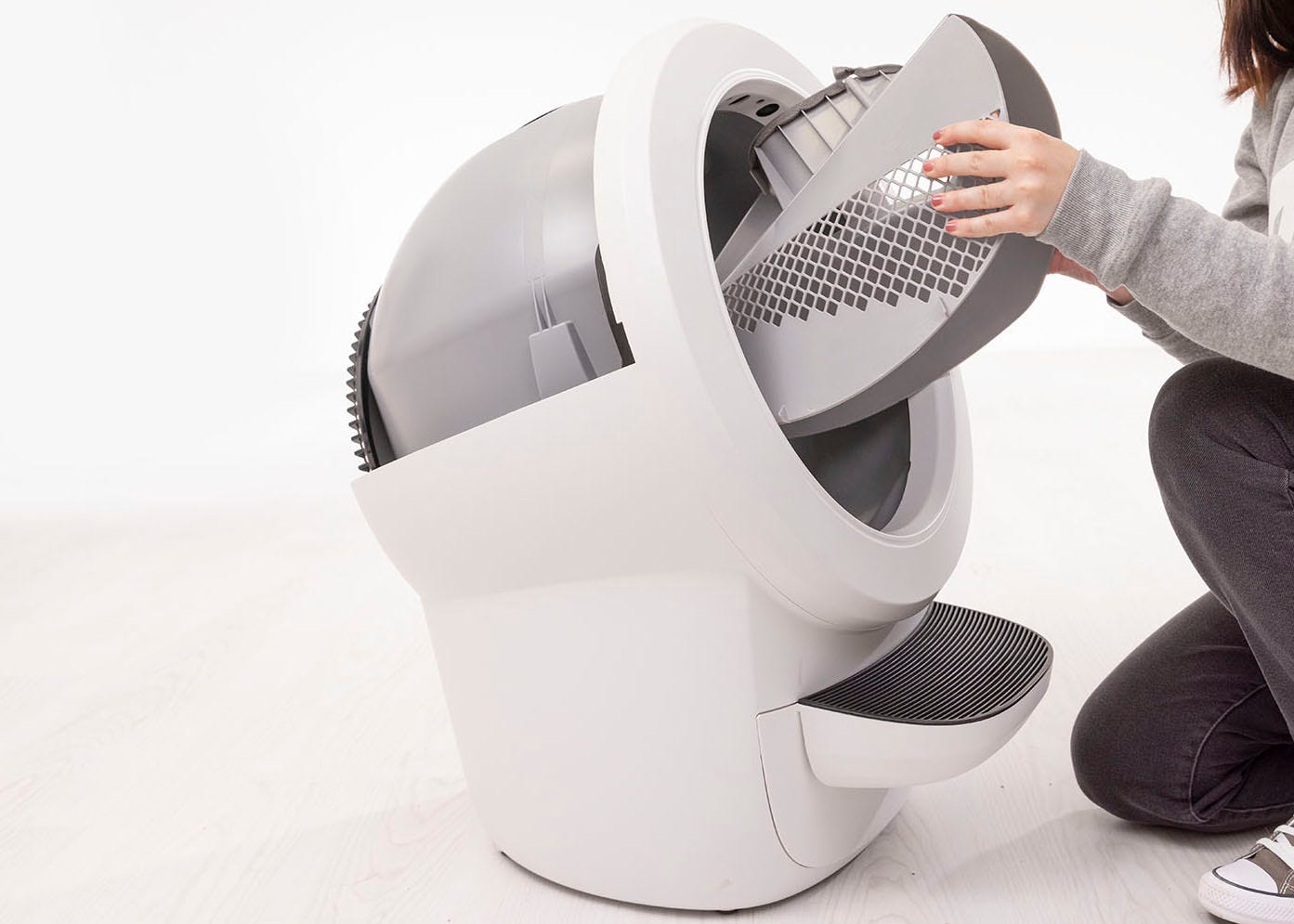 Pour une retouche rapide, vous pouvez utiliser des lingettes nettoyantes Litter-Robot ou une lingette jetable pour essuyer l'intérieur et la moitié supérieure du Globe (sans enlever la litière). Vous pouvez également faire pivoter manuellement le globe dans une position où la litière est derrière l'écran, donnant accès à la surface du revêtement flexible du globe pour le nettoyage des taches. Le Litter-Robot peut alors être utilisé presque immédiatement puisque le séchage est quasi instantané.