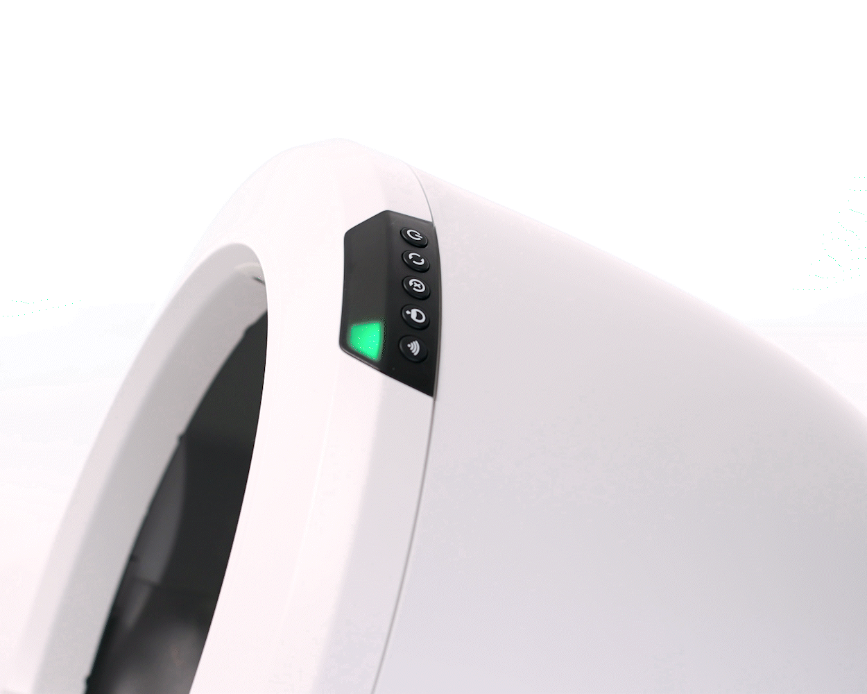 Le panneau de commande du Litter-Robot 4 comprend 5 boutons et un écran LED pour une utilisation facile.