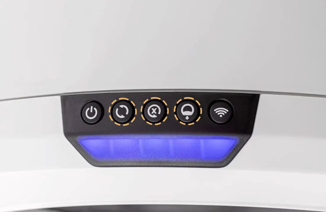 Short press the Reset button on the control panel. The unit should flash white and then display a solid blue light bar.
