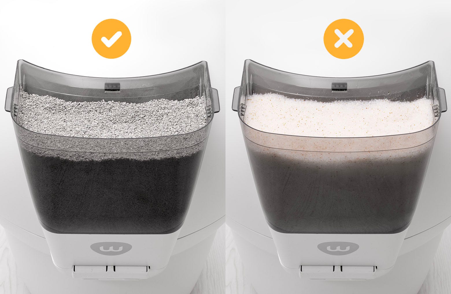 We recommend using clay-clumping litter in Litter-Robot 4. Translucent or white-colored litter (most often seen in crystal litter) may impact the litter level and Drawer Full Indicator (DFI) accuracy.