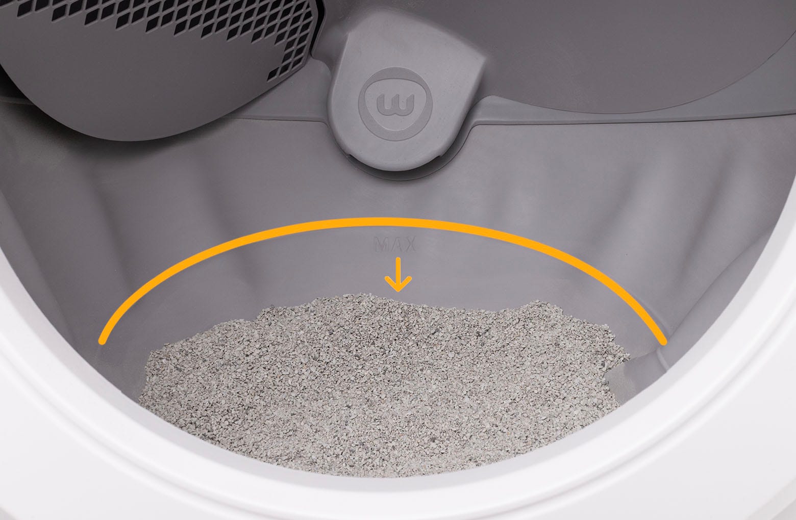 - Add litter to the globe until it is just below the MAX fill line, making sure that the fill line is still visible.