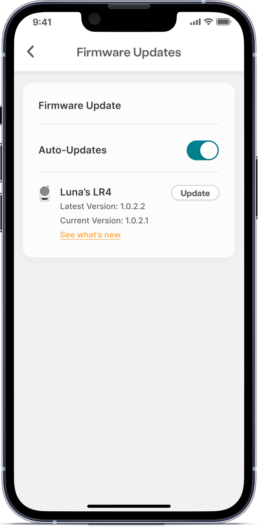On the Firmware Updates page, tap Update to begin the update process.