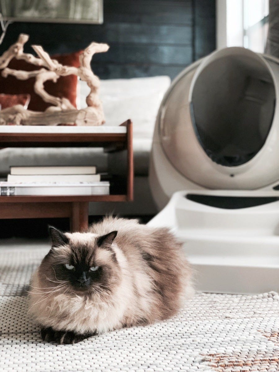 Litter-Robot 3 keeps tabby cat happy and matches your home decor.