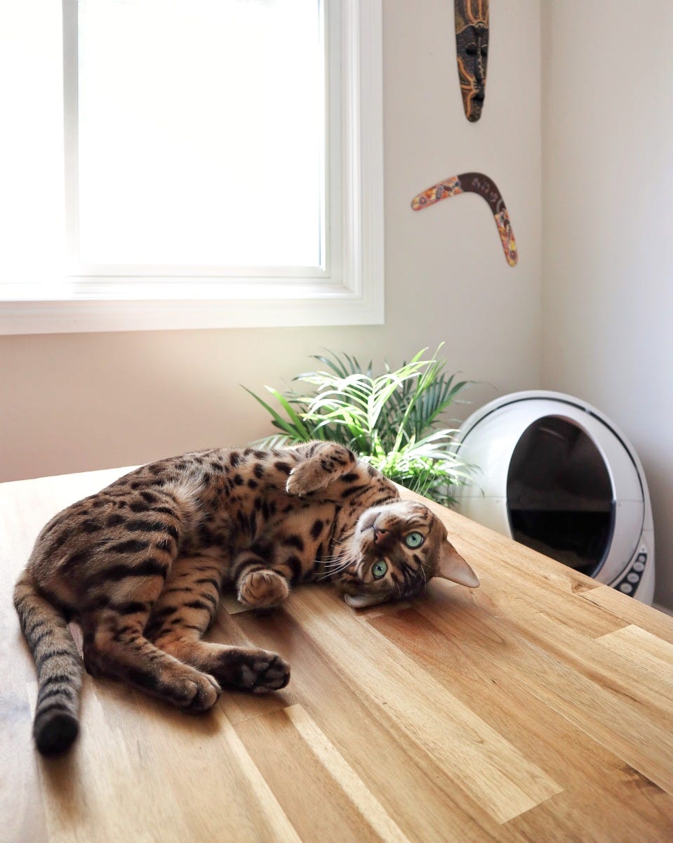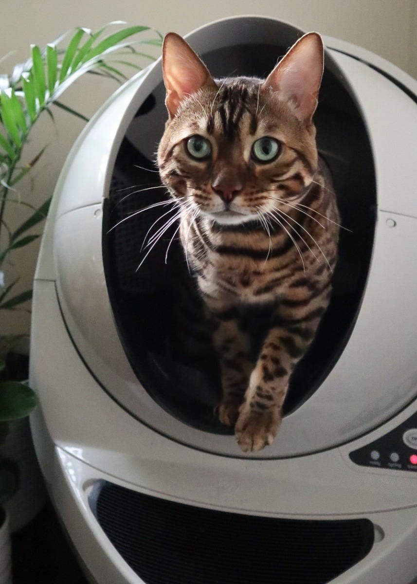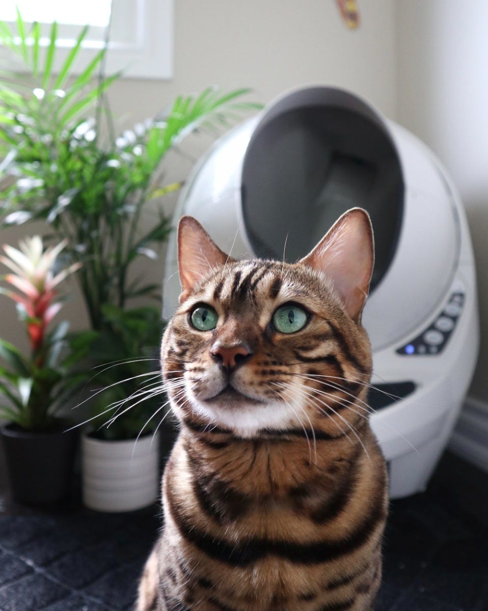 Litter-Robot 3 keeps tabby cat happy and matches your home decor.