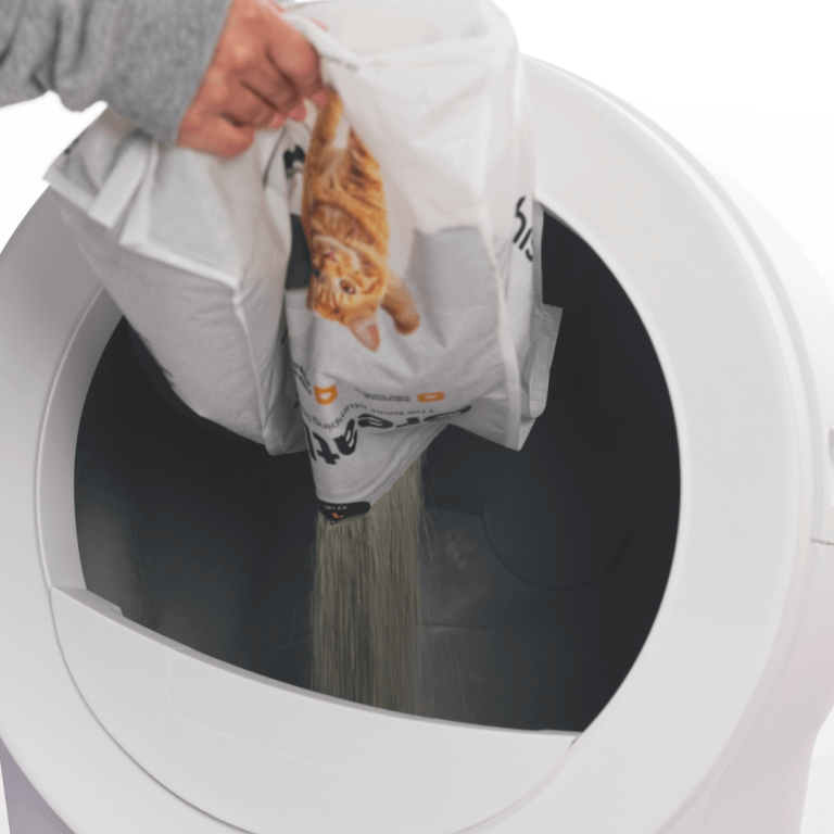 How often you add litter depends on how many cats use Litter-Robot and how frequently they use it. Litter-Robot uses litter very efficiently since the patented sifting mechanism only removes the clumps. We recommend checking the litter level each time you empty the waste drawer. If the litter is below the raised MAX fill line inside the globe, add just enough litter to meet the line.