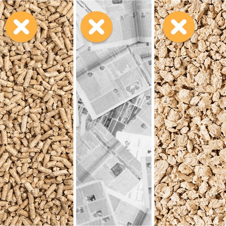 DO NOT use litters that are strictly absorbent, non-clumping, loose-clumping, newspaper-based, or wood-based pellets. Read our best litter for Litter-Robot guide for more info.