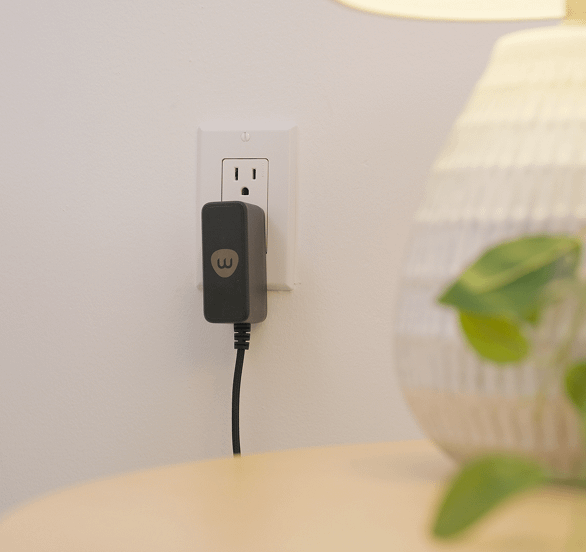 Plug the small end of the power supply into the socket on the back of the base. Then plug the AC/DC adapter into a wall outlet. Locate and press the Power button. Litter-Robot will display a solid white light indicating it is ready for use.