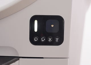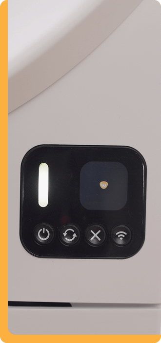 You'll find the control panel and LCD display screen on the right side of the base. The control panel also has an LED indicator light that accompanies specific states shown on the display screen.