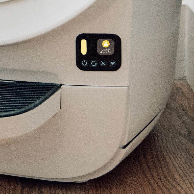 Simply empty the waste drawer when indicated by the app or the control panel, and add litter as needed.