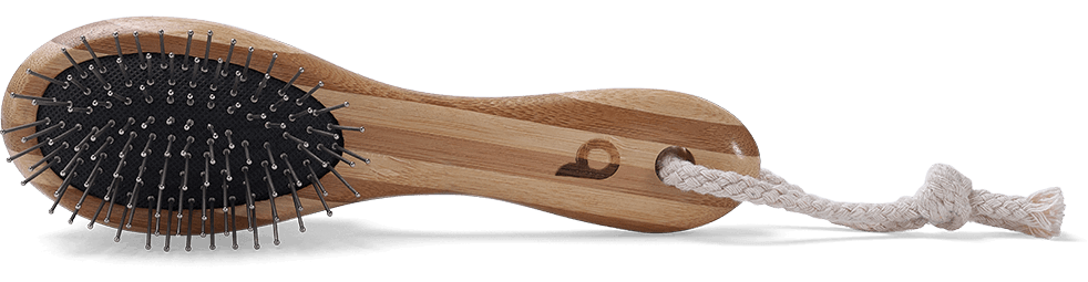 Litterbox.com Grooming Brush is double-sided for long-haired and short-haired pets alike. Use the metal pins side on your long-haired pets, which will gently separate tangles and mats. Use the boar bristles side on your short-haired pets to help massage the skin and stimulate blood flow while removing errant fur. This brush works well on cats and dogs alike—start with a weekly brushing and see how they respond!