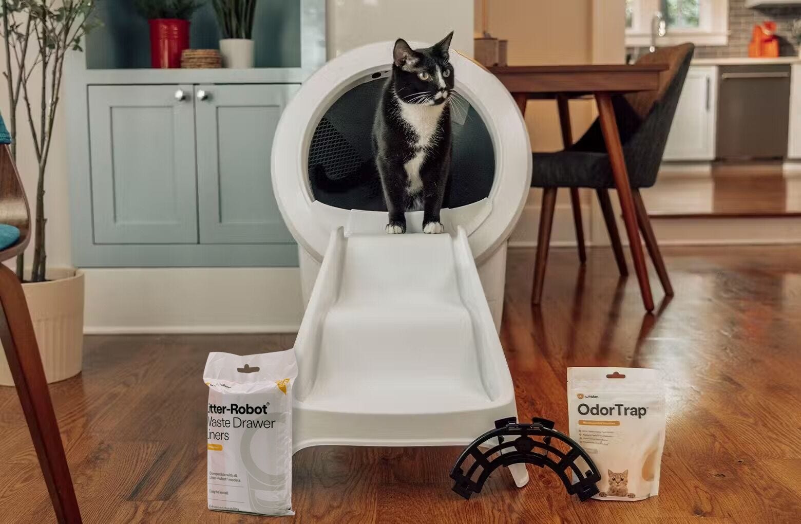 Embrace no more scooping or litter box odors with the Litter-Robot 4 Essentials Bundle. You’ll receive the highest-rated self-cleaning litter box—Litter-Robot 4—plus custom-fit accessories, premium odor-control products, and a comprehensive 3-year warranty. The Litter-Robot 4 Essentials Bundle will give your home everything needed for the best automatic litter box experience. This Litter-Robot bundle includes:
