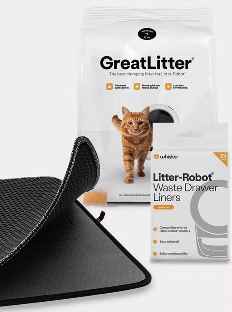Wellness is worth it, for you and your cat: Get everything you need to stop scooping with our HSA/FSA-eligible Litter-Robot 5 Pro bundle. Simplify your cat care routine with automatic cleaning, reduced litter tracking, and smart odor control—all while giving your cats a fresh bed of litter for every use.
