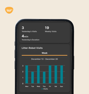 WasteID is an industry-first technology available exclusively on Litter-Robot 5 and Litter-Robot 5 Pro. It distinguishes between urine and feces for targeted odor control. For urine, Litter-Robot waits to cycle so clumps can form properly. For solid waste, it cycles quickly to contain odors right away. WasteID also unlocks advanced routine monitoring in the Whisker app, giving you deeper insights into your cat’s litter box habits. This feature becomes more accurate over time as Litter-Robot learns from your household, typically optimizing after 30 days of regular use.