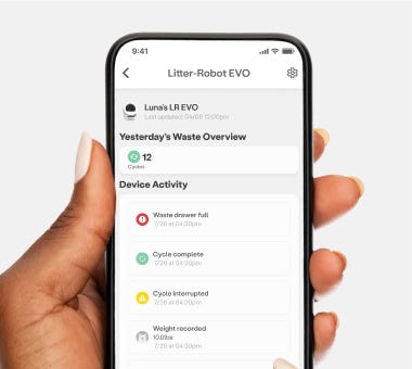 With Litter-Robot EVO, you will be able to see 7 days of robot event history, including cycles, visits, and weight recordings. Upgrade to Whisker+ to see cat-specific data, deeper insights about weight and bathroom visits, and data history back to 2 years.