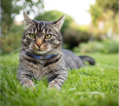 No. PetTag is not a tracking device. It’s designed only to help your Whisker products know which cat is using them. If you’d like location tracking for outdoor use, a GPS collar or an AirTag would be needed. Coming soon: Lost Pet Mode.At what age/weight can my cat wear the PetTag?