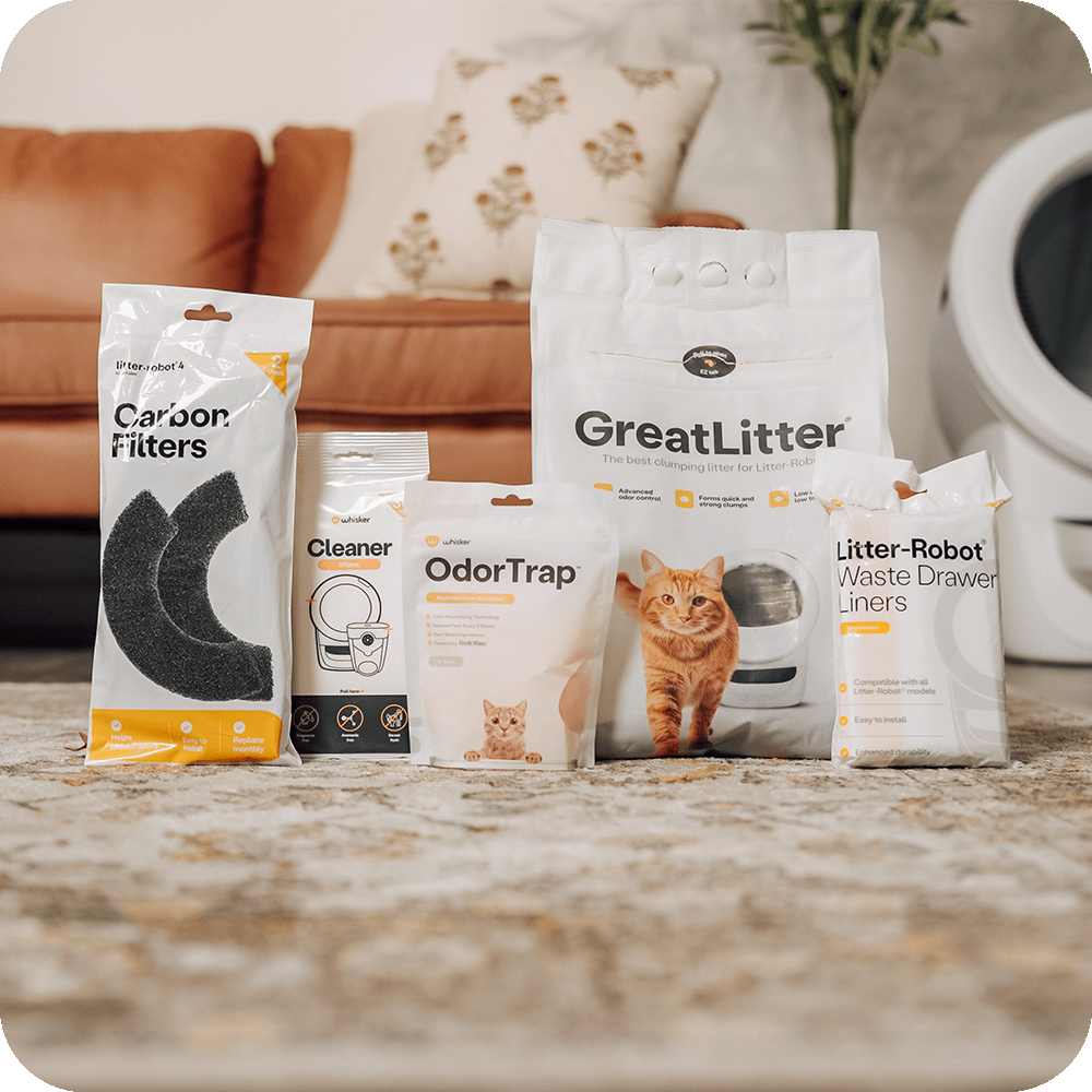 Get other cat essentials delivered to your door, on your schedule—without even thinking about it. With these helpful Litter-Robot accessories, actively reduce odors, litter tracking, dust, and keep your self-cleaning litter box clean with little to no effort!
