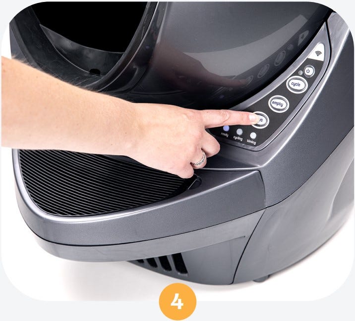 Litter-Robot 3 has four main components: the bonnet, the globe, the base, and the waste drawer.