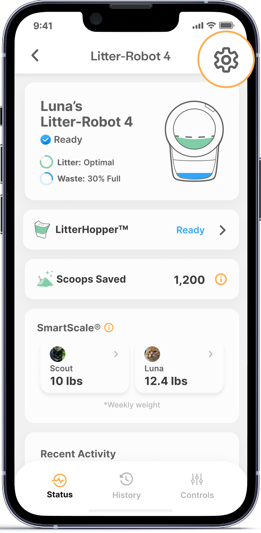 If Litter-Robot 4 has a blue light bar with a yellow blinking light adjacent to the Connect button, this indicates that the unit is in Onboarding mode and waiting to be connected to the app.