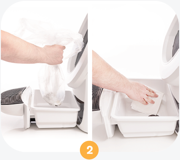 Open the Waste Liner Holder’s lid, add the roll of bags, and close.